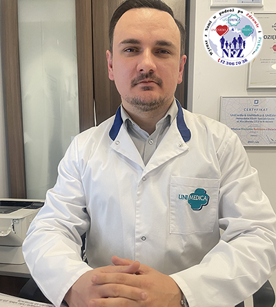 Jestem absolwentem Pomorskiego Uniwersytetu Medycznego w Szczecinie. Swoje medyczne doświadczenie zawodowe zdobywałem m.in. w Samodzielnym Publicznym Wojewódzkim Szpitalu Zespolonym w Szczecinie. Posiadam specjalizację z dziedziny medycyny rodzinnej oraz kwalifikacje do pracy w dziedzinie opieki paliatywnej. Przez kilka lat pracowałem m.in. jako lekarz prowadzący Hospicjum Domowe oraz koordynujący w Domu Pomocy Społecznej dodatkowo łącząc te obowiązki ze stanowiskiem lekarza rezydenta, a następnie specjalisty medycyny rodzinnej podstawowej opieki zdrowotnej. Jestem aktywnym członkiem Polskiego Towarzystwa Medycyny Rodzinnej. W swojej pracy łączę wiedzę z zakresu pediatrii, chorób wewnętrznych oraz geriatrii kładąc szczególny nacisk na profilaktykę oraz poprawę komfortu życia pacjenta.